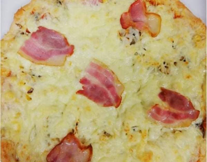 Bacon, Gomba, Kukorica, Lilahagyma, Sajt, Sonka